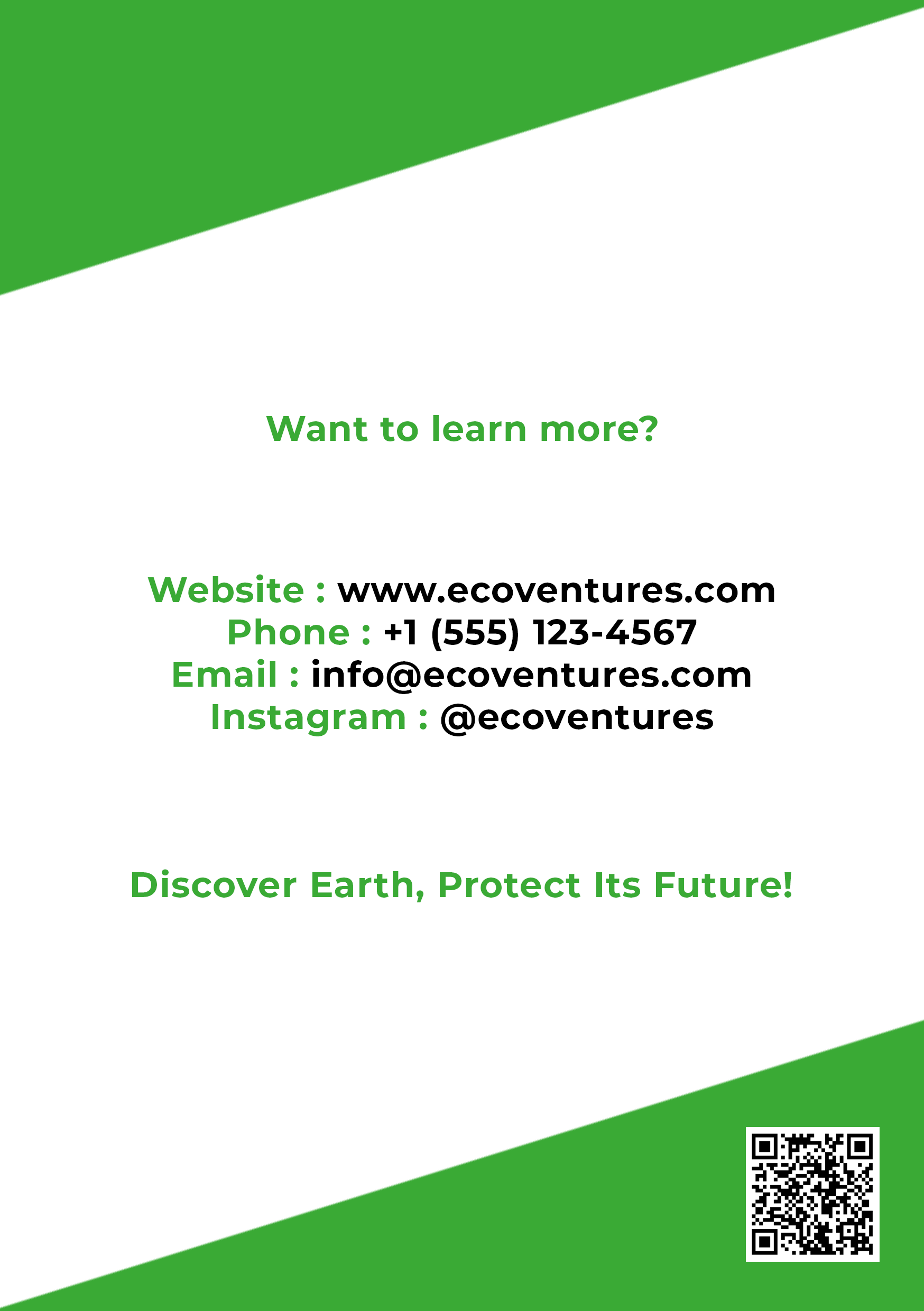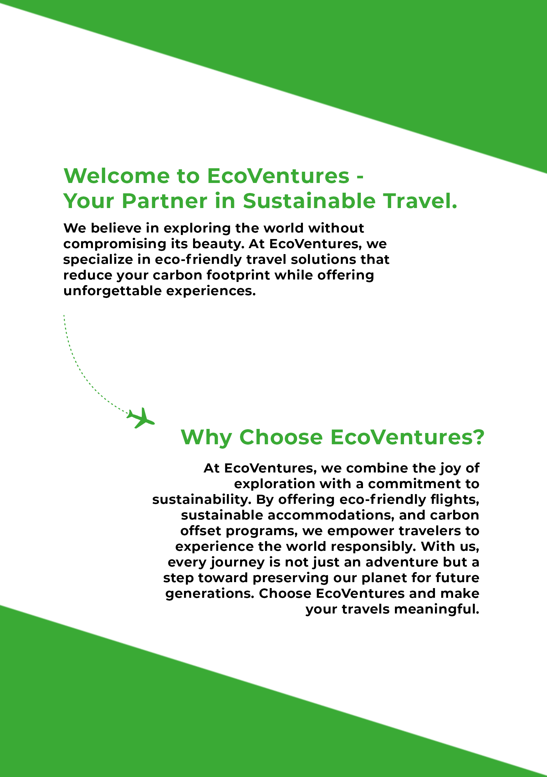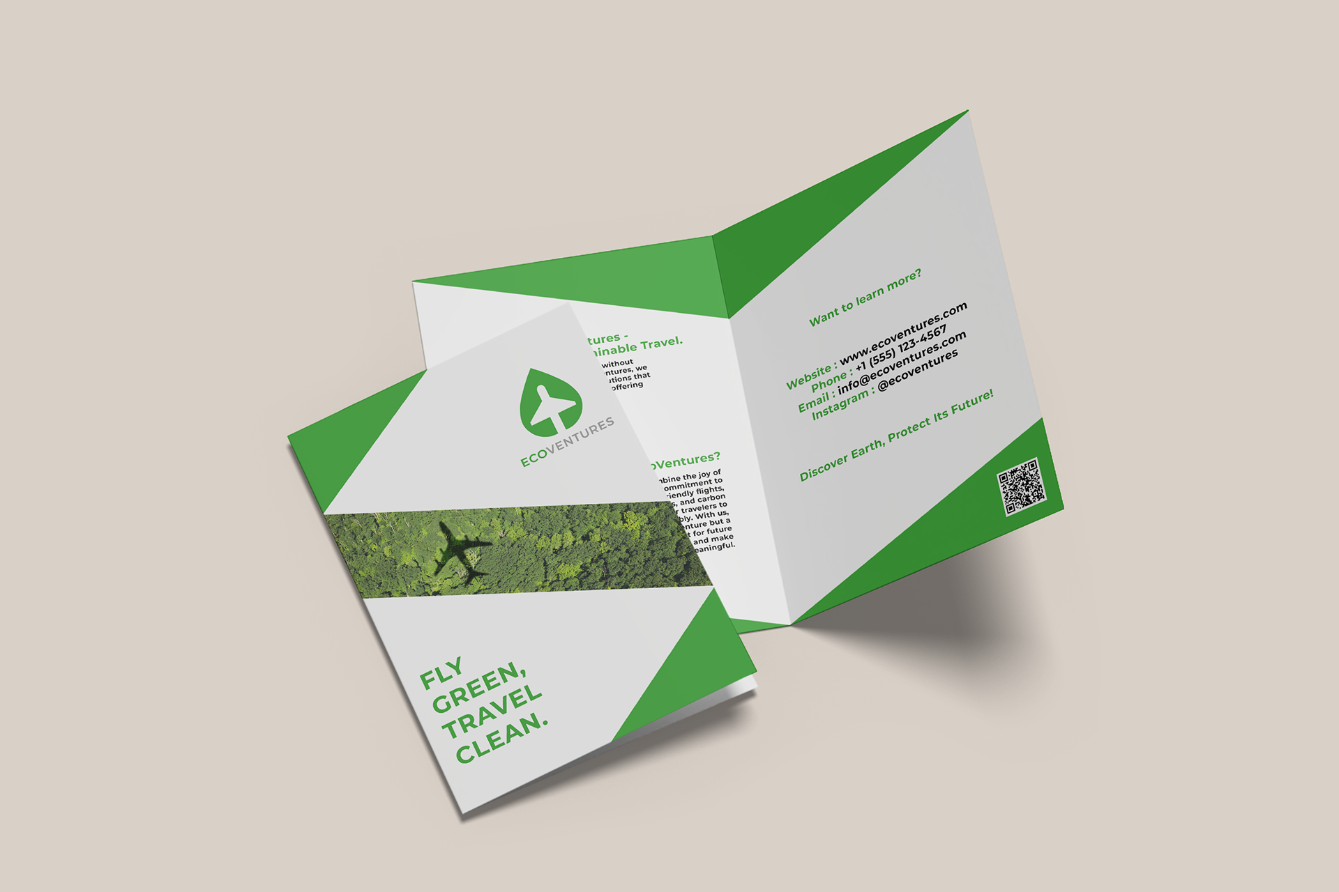 Voor dit project ontwierp ik de huisstijl en promotiematerialen voor EcoVentures, een fictief reisbedrijf dat zich richt op duurzaam en milieuvriendelijk reizen. De visuele identiteit combineert elementen van natuur en luchtvaart om verantwoord avontuur te symboliseren. Het project omvat een logo, visitekaartje en een brochure, allemaal ontwikkeld om de kernboodschap van het merk over te brengen: de wereld ontdekken, terwijl je haar beschermt.